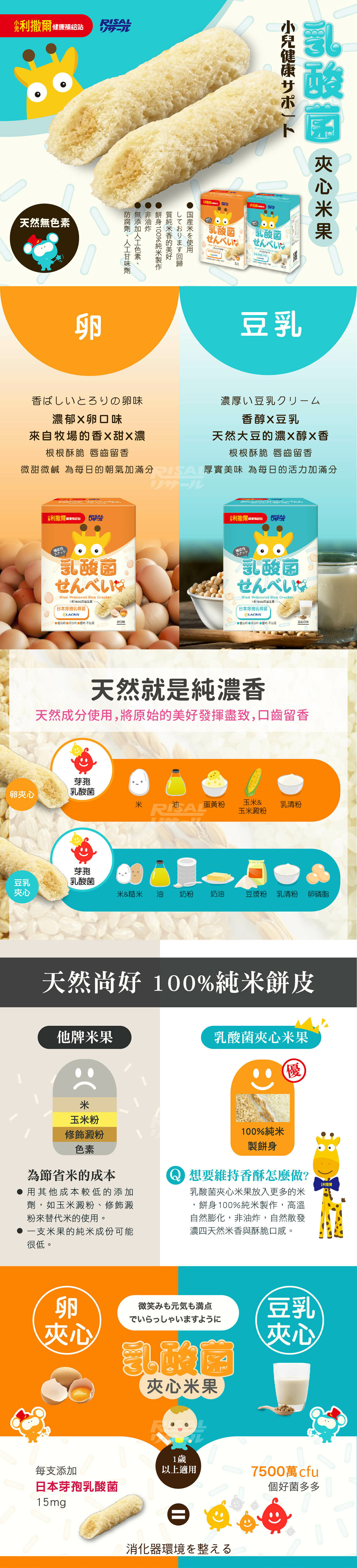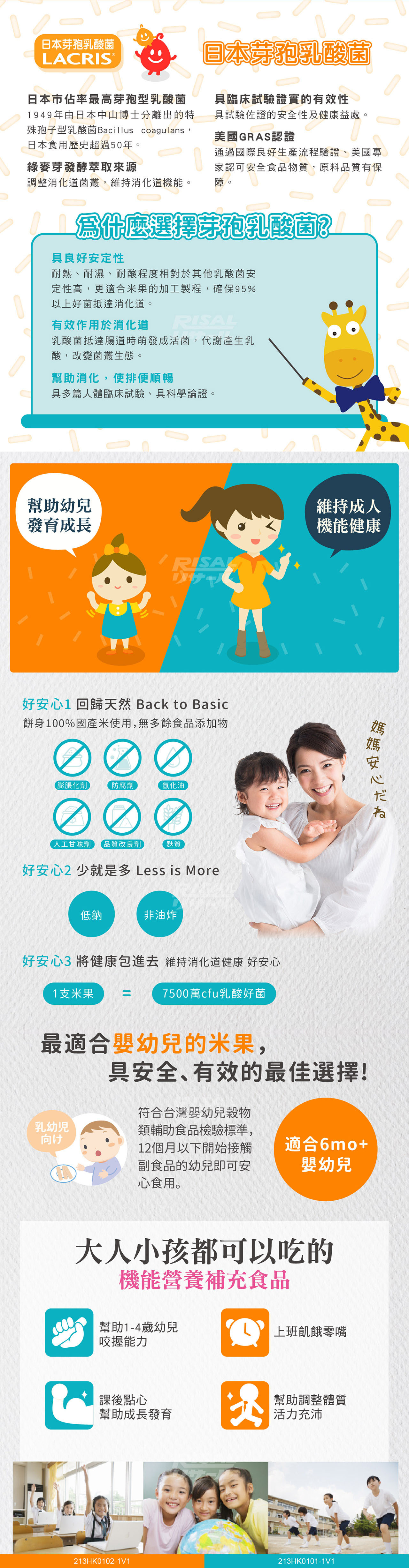 ★ 每支米果添加日本專利芽孢乳酸菌 (Bacillus coagulans),配合均衡飲食,有助維持消化道健康。
